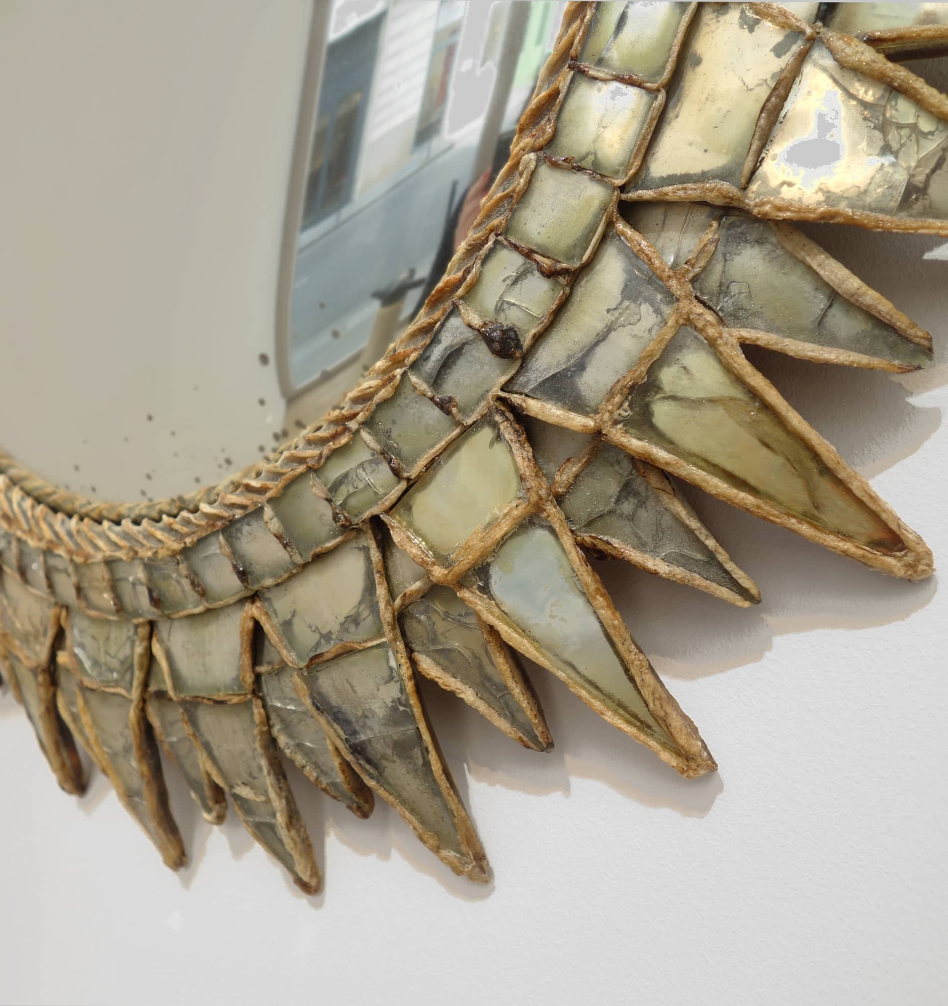 LINE VAUTRIN (1913-1997) , MIROIR 'ROI SOLEIL' VERS 1960 | Christie's from www.christies.com Aucun produit ne correspond à la sélection. * miroirs line vautrin exposés au pavillon des arts et du design en 2012. Recherchez parmi les miroirs, les tapis, les céramiques et les autres objets de décorations vintage ou contemporains. Modèle similaire répertorié page 115 dans l. Convex mirrored glass, talosel resin, colored glass. This beautiful mirror by line vautrin is made, like many of her finest, in talosel, a material of her own creation, which in this case she gave the color of rust and green, and arranged in the shape of a thistle. Learn the market value of your line vautrin. Line vautrin, miroir sorcière soleil à pointes, modèle n°2, en talosel et miroirs, des années 1955, signé ref collector square :